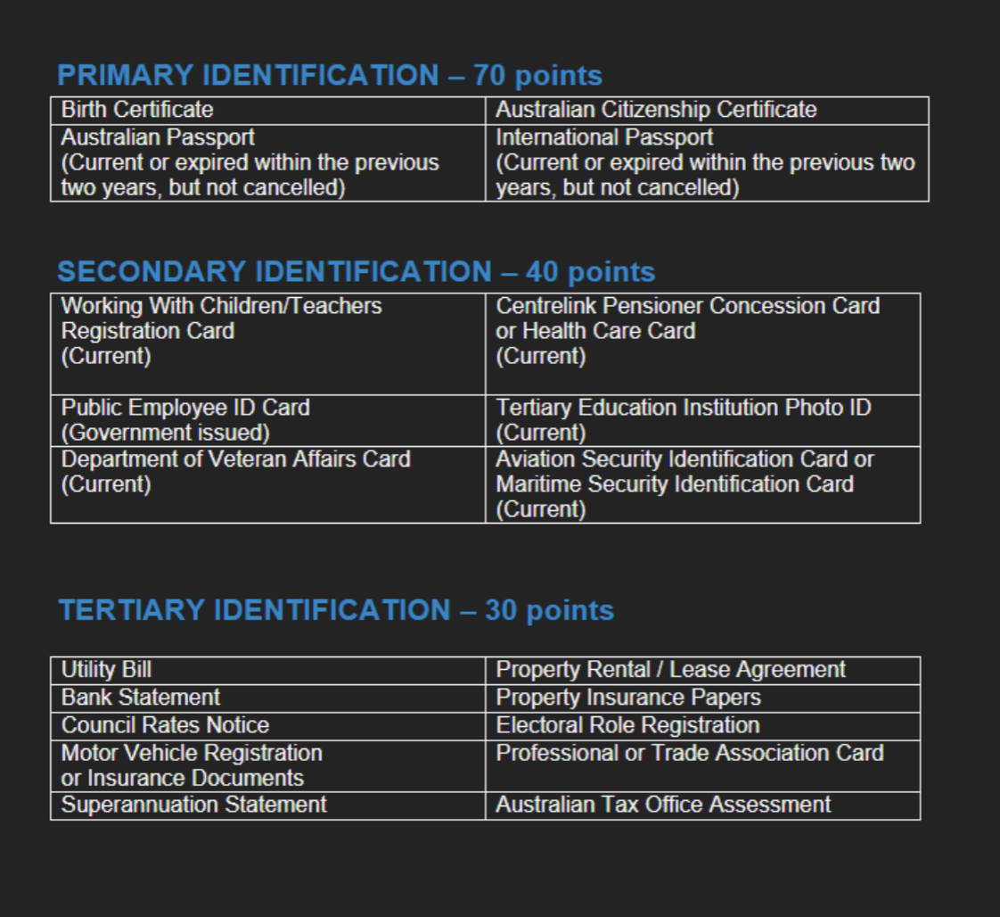 In exceptional circumstances, when photo IDs are not available. There is another option for personal identification. We accept 100 points of ID.
