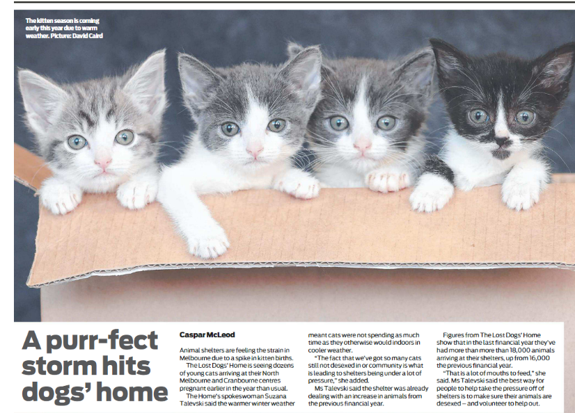 The Lost Dogs’ Home Cat Vaccine Shortage, April 2024 Cat Vaccine Shortage, update to shortage statement issued in November 2023 You may be aware some vet clinics are now offering cat vaccines however, as the largest rehoming shelter in Victoria, our situation is different. Cat vaccines...